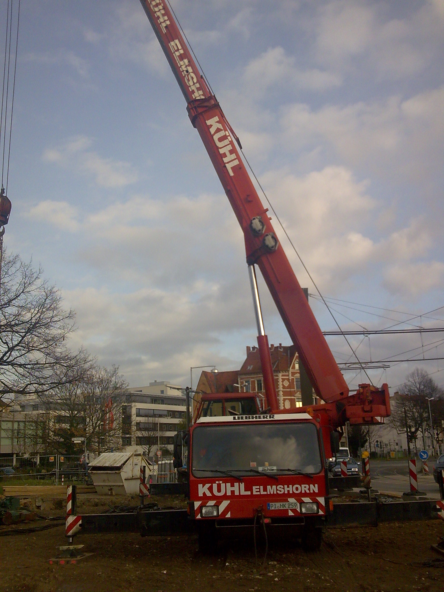 Als ich heute um 13:30 zu einer kurzen Fotosession auf der leeren Baustelle unterwegs war, stürmten zwei polnische LWK-Fahrer mit den Worten: „Eh, du Chef? Ich Probläm.“ auf mich zu und wedelten mir mit irgendwelchen Papieren vor der Nase rum. Ich habe ihnen versucht zu erklären, dass ich nicht der Chef bin. Irgendwann haben sie mit den Worten: „Chef Mittagspause“ kapituliert. Bei meiner Rückkehr vom Salatholen hatten sie dann den Chef und seine Combo gefunden. Eine Hamburger Tief- und Rohrleitungsbaufirma hat nun das Kommando auf der Baustelle und die Polen durften die Ladung ihres 38-Tonners in die Baustelle manövrieren.