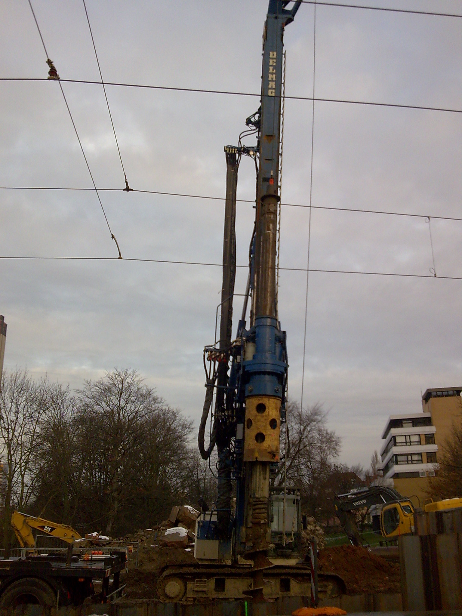 Es handelt sich tatsächlich um Spundwände und Pfahlgründungen. Ich hab mir das nochmal von einem Fachmann erklären lassen. Die Spundwände werden versenkt um danach in Ruhe in der Tiefe bauen zu können, ohne dass man ständig bis zur Halskrause im Wasser steht, und die dicken Rohre – Durchmesser ca. 70cm – werden zur Bohrung von Pfahlgründungen in die Erde getrudelt. Da kommt dann anschließend Beton rein und schon sind Fundamente für die nächsten 1000 Jahre geschaffen. Pfahlgründungen gab´s schon vor 6000 Jahren am Bodensee, ein bewährtes Verfahren also. Die Jungsteinzeitler haben das aber ohne Maschinen gemacht. Als Alternative zu der Dampfhammermthode, mit der die Spundwände versenkt werden, gibt´s laut Auskunft meines Fachmanns auch eine Pressmethode. Da fallen dann bei eon nicht die Tassen vom Konferenztisch oder die Ohren ab, aber das kostet vermutlich mehr. Pressen ist teurer als hämmern. Ich arbeite auch nicht bei eon, insofern ist mir das auch wurscht,