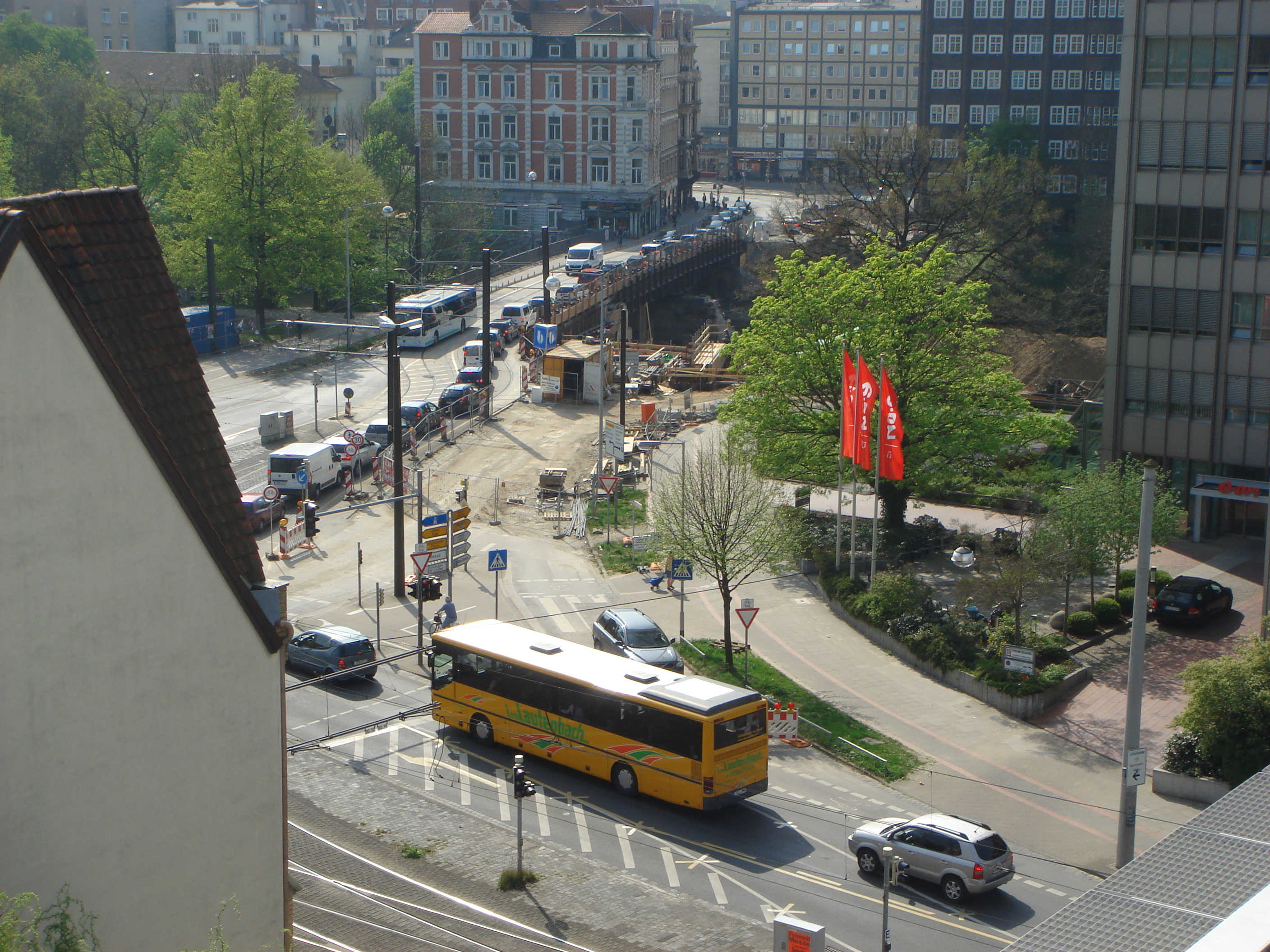 Ich bin aus dem Osterurlaub zurück und habe mir erst mal von oben wieder einen Überblick verschafft. Die Details kommen später. Ich hörte, ich habe einen Straßenbahn/Bus-Unfall in der letzten Woche verpasst. Das schmerzt den sensationslüsternen Reporter ein wenig, aber man kann nicht alles haben. Wie zu sehen, hat die Stauträchtigkeit nicht nachgelassen. Irgendwann könnte sich nochmal jemand aus dem zuständigen Amt an die Kreuzung begeben und nachgucken, ob die Ampelschaltung so sinnvoll ist. Ich habe nach wie vor den Eindruck, dass der Verkehrsfluß Deisterstrasse/Blumenauerstrasse unangemessen hoch gewichtet ist. Seitdem man in der Zementruine nicht mehr parken darf, sollte die Bedeutung dieser Achse doch weiter reduziert sein.