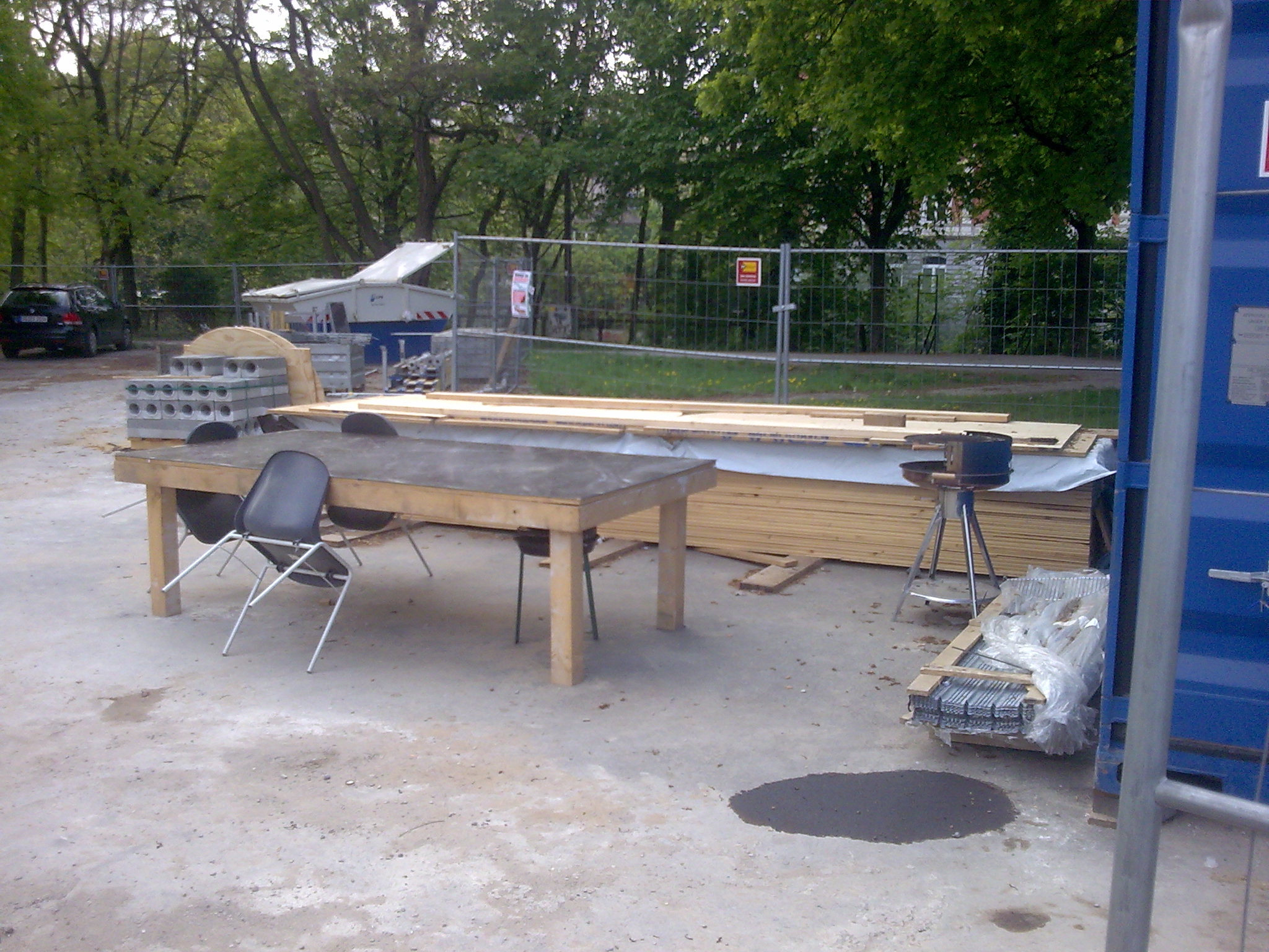 In den letzten Tagen war zum Feierabend des öfteren ein gemütliches Beisammensein im Bau-Camp zu beobachten. Großer Tisch, gemütliche Bestuhlung, ein kühles Bier und ein bisschen Grillgut, so kann man den Arbeitstag ausklingen lassen. Die „gemäßigten Temperaturen“ am heutigen Donnerstag laden nur wenig zum Absacker im Freien ein. Von der 20° Marke sind wir weit entfernt.